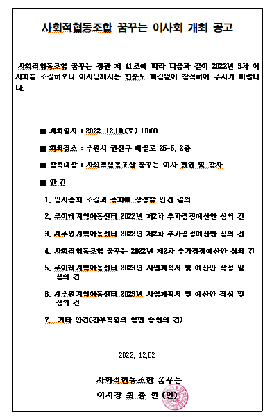 | 다음글 | 2022년 2차 이사회 의사록 및 추경예산 |